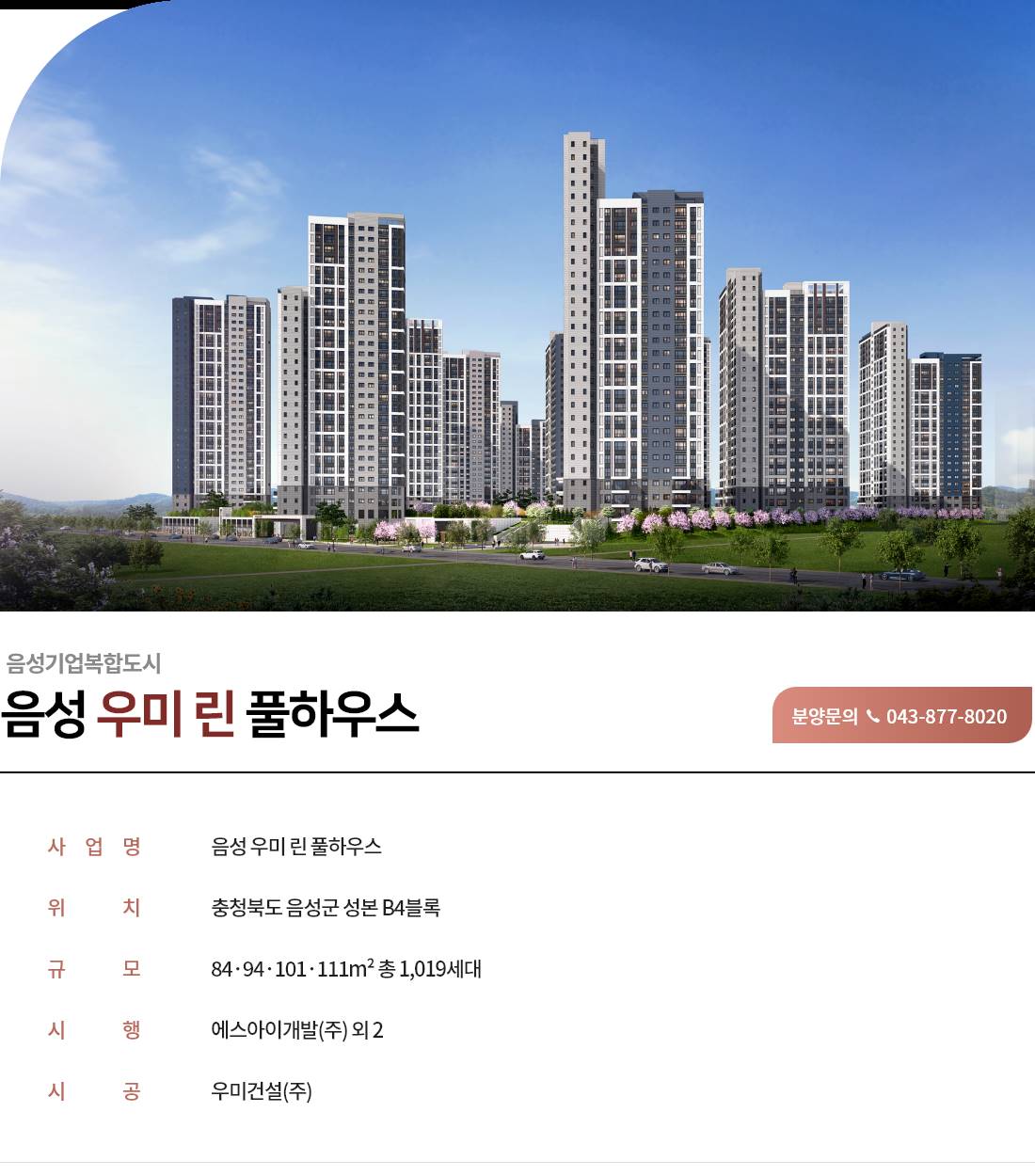 음성읍에서 보기 드문 1,019세대의 대규모 단지로 조성되어 지역을 대표하는 주거 가치와 우수한 주거 쾌적성을 제공합니다.